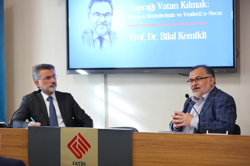 Fatih Sultan Mehmet Vakıf Üniversitesi tarafından düzenlenen Ayasofya Söyleşileri’nin bu ayki konuğu Prof. Dr. Bilal Kemikli oldu. Moderatörlüğünü FSM Vakıf Üniversitesi Rektörü Prof. Dr. Nevzat Şimşek’in yaptığı programda Prof. Dr. Kemikli, “Toprağı Vatan Kılmak: Kurucu Metinler” başlığıyla Türk düşünce geleneğinin temel metinlerini ve bu metinlerin toplum inşasındaki rolünü ele aldı.