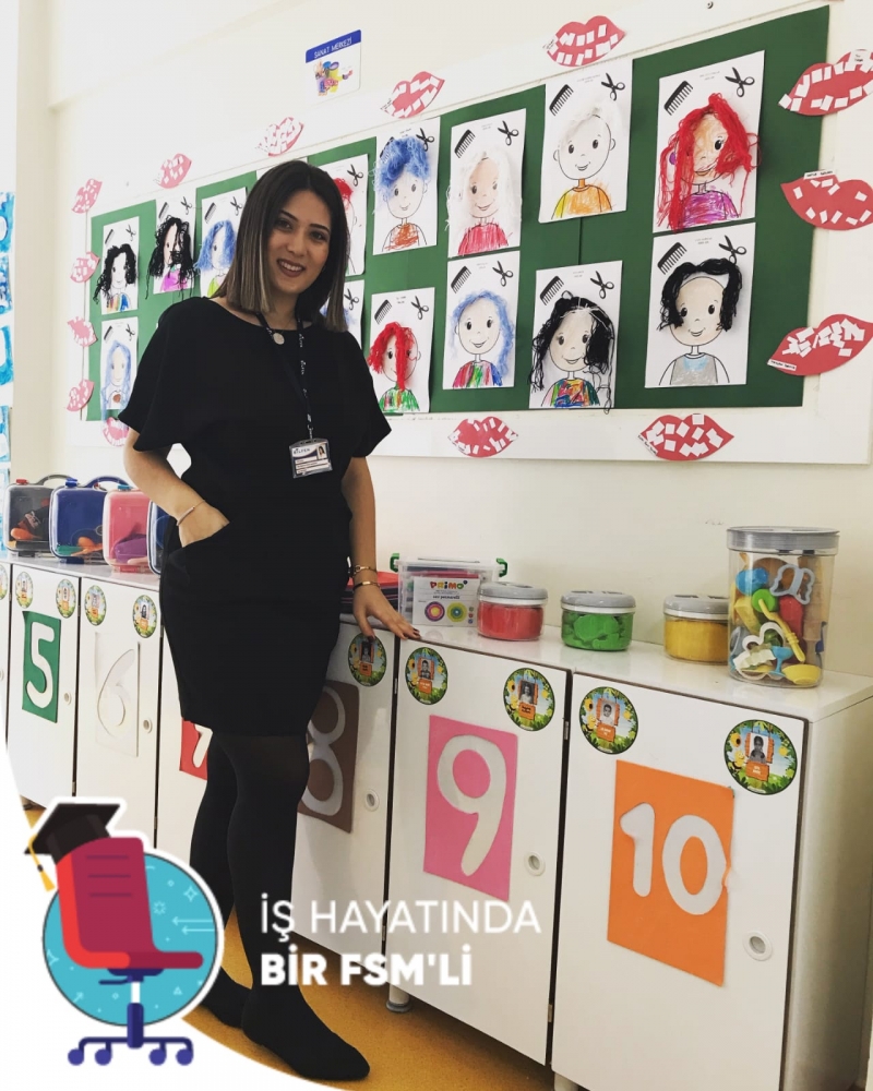 Bir anaokulu öğretmeninde olması gereken özelliklerden en önemlisi karşı tarafa güler yüzlü olup enerjisini hissettirmektir. Ekip çalışmasına yatkın, kendini geliştirmeye açık ve enerjik olması gerekmektedir. İş görüşmemde yöneticilere bunu yansıttığımı düşünüyorum ki görüşmem olumlu geçti. Tabi ki FSM’de almış olduğum eğitimin kaliteli olması ve yaptığım stajlar da işe alınmamda etkili oldu. Pratik sahayı tecrübe etmek başta zor gibi görünse de beni çok fazla zorlamadı. Çünkü üniversitemde aldığım eğitimin staj deneyimlerimle bütünleşmesi mesleğimi icra etmem konusunda bana yardımcı oldu. Şu an eğitime devam eden arkadaşlarıma da stajlarına ve derslerine önem vererek çalışmalarını, sık sık eğitimleri ve seminerleri takip edip onlara katılmalarını öneriyorum.