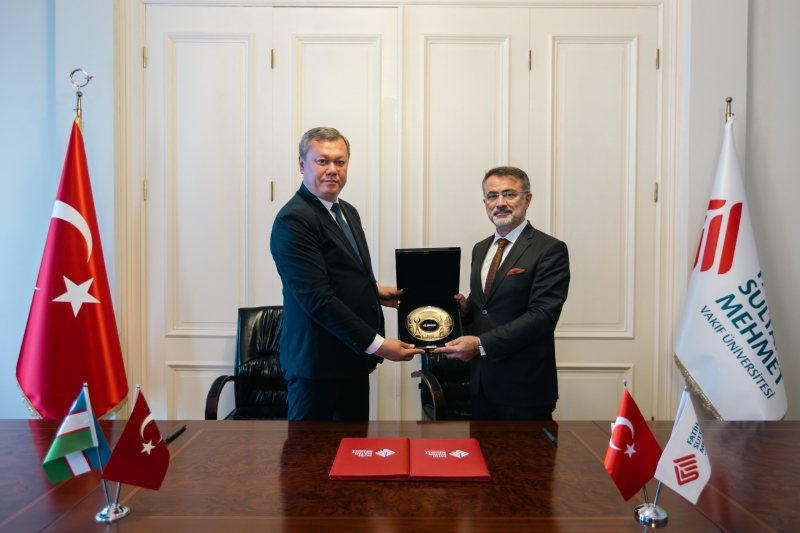 Özbekistan’ın başkenti Taşkent’te 37 bilim alanında faaliyet yürüten Alfraganus Üniversitesi Heyetini, Üniversitemizde ağırladık. Akademik ve idari çalışmaları kapsamında Üniversitemizde temaslarda bulunan Rektör Prof. Dr. Mahmudov Muhammadismoil başkanlığındaki Alfraganus Üniversitesi heyeti Rektörümüz Prof. Dr. Nevzat Şimşek ile de görüşme gerçekleştirdi. Misafir Üniversite Mütevelli Heyet Üyeleri ile Akademik ve İdari Birim Yöneticilerinin bulunduğu toplantıda Rektör Yardımcımız Prof. Dr. Zekeriya Kurşun ve Uluslararası İlişkiler Daire Başkanımız Dr. Bedia Tekin de yer aldı. Akademik iş birliği ve yeni projeler üzerine değerlendirmelerin yapıldığı görüşmeler sonunda iki üniversite arasında İyi Niyet Protokolü imzalandı. Ayasofya Yerleşkemizi de ziyaret etme fırsatı bulan heyet, İslam Sanatları Uygulama ve Araştırma Merkezi Başkanı Dr. Betül Bilgin ile bir araya gelerek kurumlar arasındaki kültürel ve akademik bağların güçlendirilmesine destek verdiler. Görüşmeler, hediye takdimi ile sona erdi.
