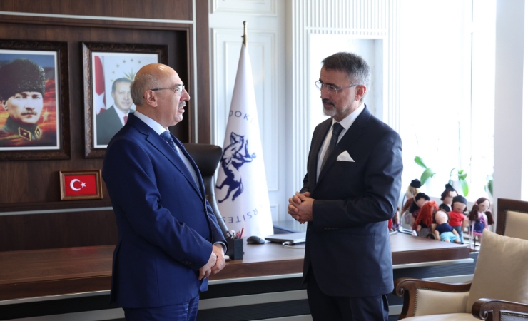 Çalışma programları kapsamında İzmir'de bulunan Rektörümüz Prof. Dr. Nevzat Şimşek, Dokuz Eylül Üniversitesi Rektörü v. Prof. Dr. Mahmut Ak'ı da ziyaret etti. Akademik, sosyal ve kültürel alanlarda bilgi alışverişinin gerçekleştirildiği görüşme, hediye takdimi ile sona erdi.