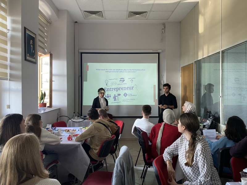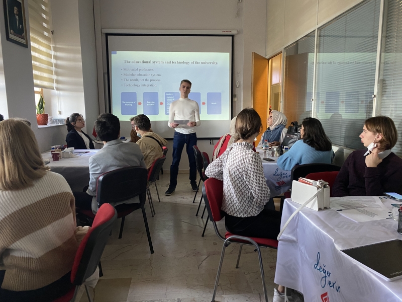Programın öğrenci çalıştayı kısmı ise V.N. Karazin Kharkiv Üniversitesi Bilgisayar Mühendisliği, Sosyoloji ve Ekonomi bölümlerinden 10, FSMVÜ Hukuk, Mühendislik ve Mimarlık Fakültelerinden 7 öğrencinin katılımıyla yapıldı. Gruplara ayrılan öğrenciler “üniversitelerin oluşturulmasında ve geliştirilmesinde öğrencilerin rolü, modern dijital nesil ve öğrencilerin akademik hareketliliği” konularına yönelik sunumlarını gerçekleştirerek fikir alışverişinde bulundu.