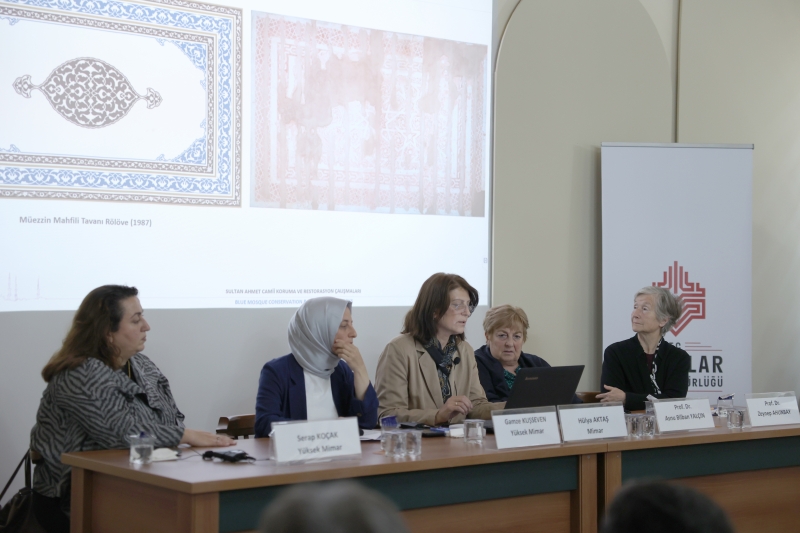 Programın ilk oturumu, Dr. Nurcan Sefer’in moderatörlüğünde gerçekleşti. Oturumda İstanbul’daki önemli tarihi yapılarda yürütülen restorasyon çalışmaları masaya yatırıldı. İstanbul’un tarihi yapılarında yürütülen restorasyon çalışmalarının ele alındığı oturumda, Prof. Dr. Zeynep Ahunbay “Ayasofya Camii’ndeki Restorasyon Çalışmaları”nı, Prof. Dr. Asnu Bilban Yalçın ise “Kariye Camii’ndeki Restorasyon Çalışmaları”nı anlattı. Sanat Tarihçisi Neslihan Ecem Oksal’ın katkılarıyla zenginleşen oturumda, Mimar Gamze Kuşseven Özkılınç “Sultanahmet Camii’ndeki Restorasyon Çalışmaları”na dair deneyimlerini paylaştı. Mimar Hülya Aktaş’ın değerlendirmelerinin ardından Y. Mimar Serap Koçak “Süleymaniye Camii Restorasyonu” başlıklı sunumuyla oturumu tamamladı.