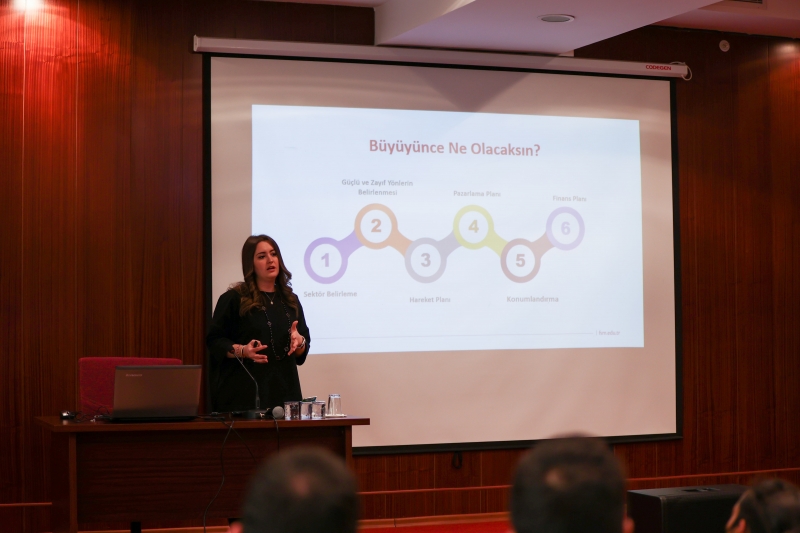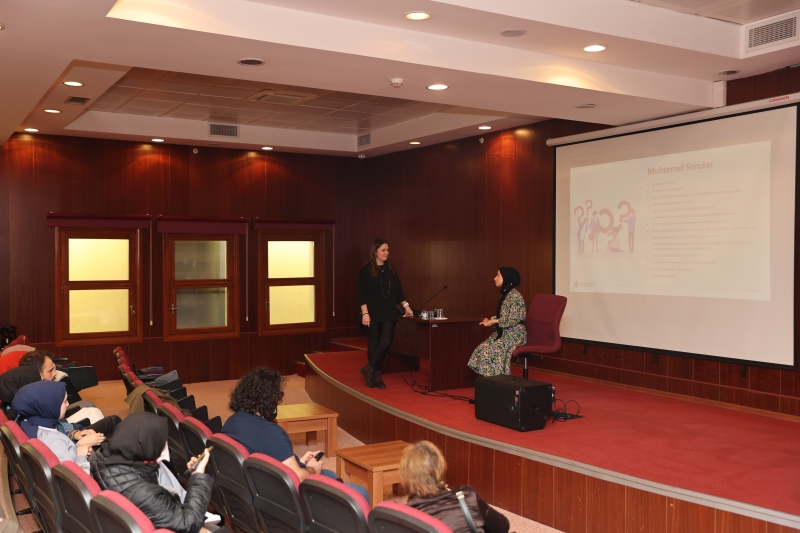 Kariyer Merkezi Eğitim Koordinatörü Seda Türkyılmaz Öztürk’ün verdiği seminerde kendini tanıma, hedef belirleme, kariyer planlama, CV hazırlama, CV hazırlamada doğru bilinen yanlışlar, öğrencilik ve iş hayatı gibi konular anlatıldı. Öğrenci sorularıyla zenginleşen programda, iş başvuruları ve izlenmesi gereken yöntemler, mülakatlarda dikkat edilecek hususlar, kuşak farklılıkları ve iş hayatına yansıması gibi konulara da değinilerek mülakat provası yapıldı. Provada “iş görüşmesine gelen aday” rolü üstlenen öğrencilerimiz iş görüşmelerinde karşılaşabilecekleri sorular üzerinden değerlendirildi. Örnek vakayı izleyen öğrenciler de “insan kaynakları çalışanı” rolüyle sunumda anlatılanları uygulama fırsatı buldu.