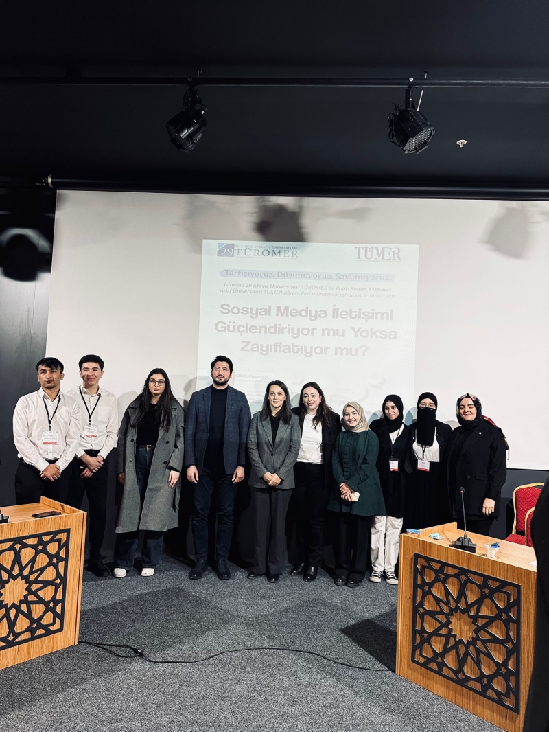 29 Mayıs Üniversitesi TÜRÖMER tarafından düzenlenen münazara yarışmasına FSMVÜ TÜMER öğrencileri Naimakhon Khamidjonova, Sulafa Fahmy, Mohammadyusuf Bobomuradov ve Amır Temur Beg Temur katıldı. “Sosyal medya iletişimi olumlu mu yoksa olumsuz mu etkiler?” başlığıyla gerçekleştirilen münazarada her iki takım da güçlü hazırlıkları ve etkili konuşmalarıyla dikkat çekti.