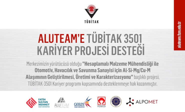 Üniversitemiz, başarılarıyla adından söz ettirmeye devam ediyor. Alüminyum Test Eğitim ve Araştırma Merkezimiz (ALUTEAM) araştırmacılarından Doç. Dr. Gökhan Özer’in yürütücülüğünü yaptığı “Hesaplamalı Malzeme Mühendisliği ile Otomotiv, Havacılık ve Savunma Sanayisi için Al-Si-Mg/Cu-M Alaşımının Geliştirilmesi, Üretimi ve Karakterizasyonu” başlıklı projenin TÜBİTAK-3501 Kariyer Geliştirme programı kapsamında desteklenmeye hak kazandı. Dr. Ebubekir Koç (ALUTEAM) ve Doç. Dr. Sezgin Cengiz (Gebze Teknik Üniversitesi-Savunma Enstitüsü) araştırmacı olarak, Doç. Dr. Derya Dışpınar (FOSECO-Hollanda) ve Prof. Dr. Kerem Altuğ Güler (Yıldız Teknik Üniversitesi-Metalurji ve Malzeme Mühendisliği) danışman olarak, Yağız Akyıldız (ALPOMET-Kobi) ise hizmet sağlayıcı olarak yer aldığı bu projede, geleneksel ve ileri üretim teknolojilerinde (döküm ve eklemeli imalat vb.) sıkça kullanılan Al10SiMg/Cu alaşımlarına alternatif ve aday alaşım geliştirilmesi hedefleniyor.