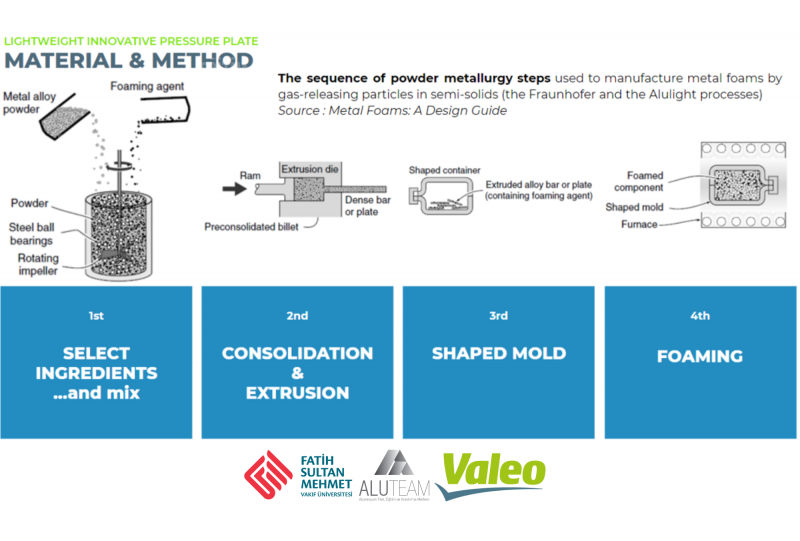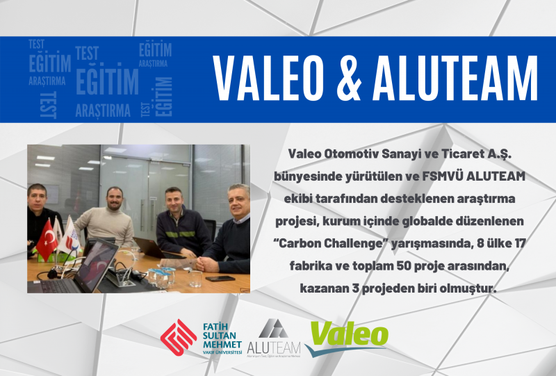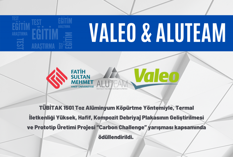 TÜBİTAK 1501-Sanayi Araştırma Teknoloji Geliştirme ve Yenilik Projeleri Destekleme Programı kapsamında Valeo Otomotiv Sanayi ve Ticaret A.Ş. bünyesinde yürütülen ve Fatih Sultan Mehmet Vakıf Üniversitesi ALUTEAM ekibi tarafından desteklenen Toz Alüminyum Köpürtme Yöntemiyle, Termal İletkenliği Yüksek, Hafif, Kompozit Debriyaj Plakasının Geliştirilmesi ve Prototip Üretimi Projesi kurum içinde globalde düzenlenen Carbon Challenge yarışmasında değerlendirildi. 8 ülke 17 fabrika ve toplam 50 projenin katıldığı yarışmada, ALUTEAM’in desteklemiş olduğu VALEO yürütücülüğündeki araştırma kazanan 3 projeden biri oldu.